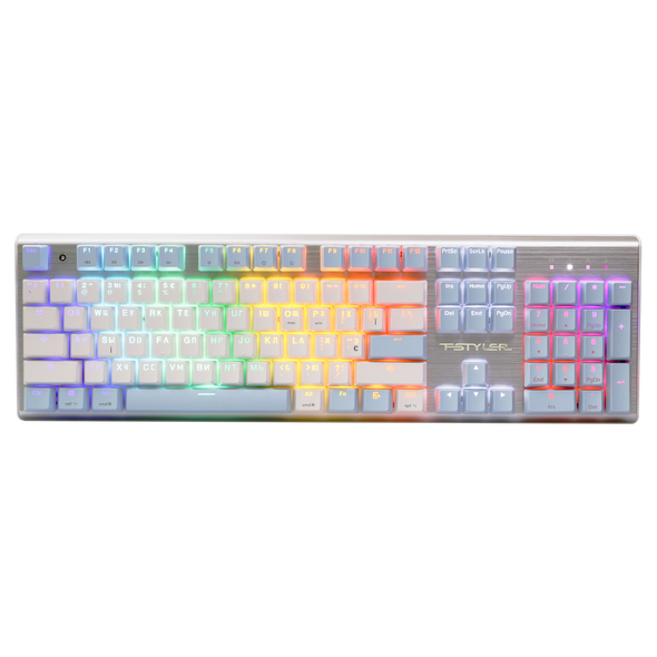 A4Tech Fstyler FS100 is a mechanical keyboard with an aluminum alloy metal panel that combines durability and comfort for work and play. Equipped with hot-swappable Fstyler mechanical switches, it supports simultaneous pressing of all keys and has a response time of 1 ms. RGB backlighting with 10 effects creates a colorful atmosphere, and Windows and Mac compatibility makes the keyboard versatile for different systems. Optional software lets you customize modes of operation for office or gaming.
