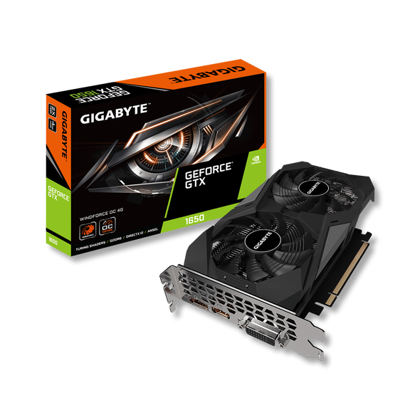 GIGABYTE GeForce GTX 1650 D6 WINDFORCE OC 4G - ігрова відеокарта початкового рівня, яка може забезпечити комфортну продуктивність у робочих завданнях, а також у кіберспортивних дисциплінах. Модель виконана на основі архітектури NVIDIA Turing. Карта має 896 CUDA ядер і працює на частоті 1710 МГц.